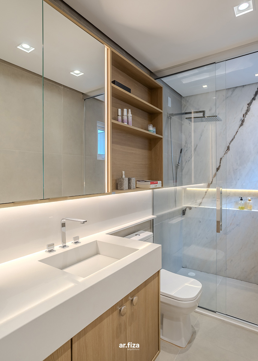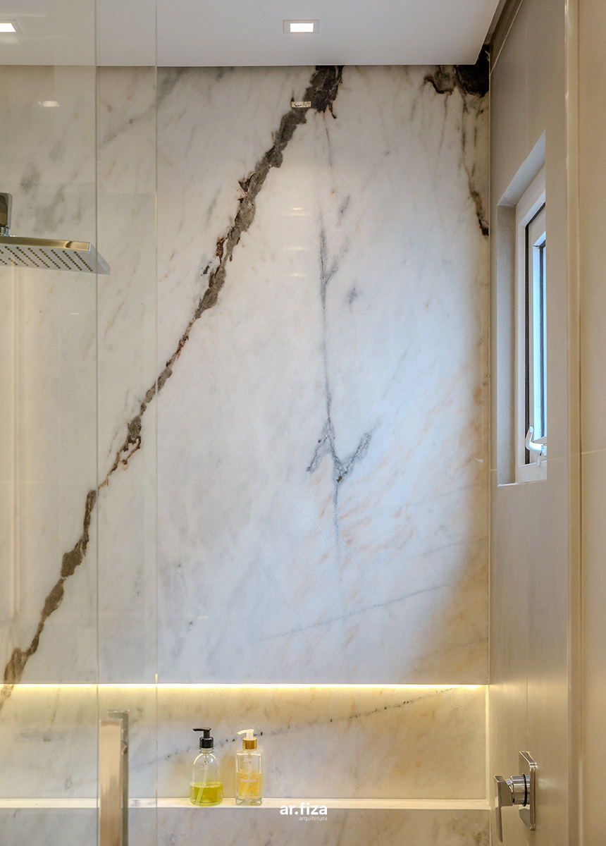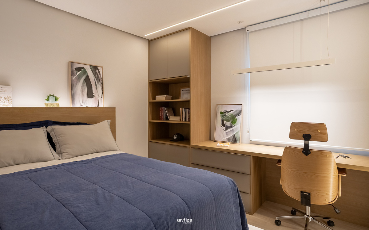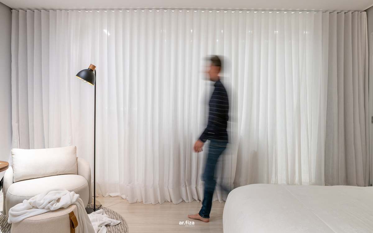 A prioridade para o cliente era que o apartamento tivesse áreas de circulações fluidas e que o design evidenciasse a amplitude da planta. Outro pedido importante foi um projeto de iluminação com luzes aconchegantes e indiretas que valorizassem a marcenaria, os móveis soltos e as decorações. Para o teto foram selecionados itens pontuais criando assim um forro com visual limpo, realçando a sensação de amplitude.