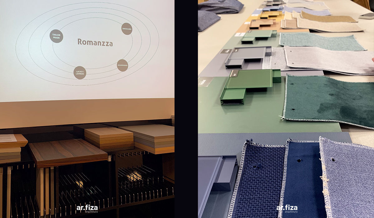 Seguindo a programação, na tarde tivemos uma apresentação sobre os diferenciais e possibilidade de uso de todos materiais disponibilizados pelas linhas da Romanzza, proporcionando que criemos projetos de arquitetura de interiores contemporâneos e de alto padrão para clientes exigentes com o olhar atento a qualidade.